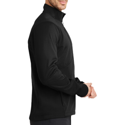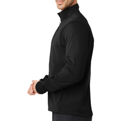 - 100% poly stretch shell bonded to textured grid fleece with a laminated film insert for wind and water resistance